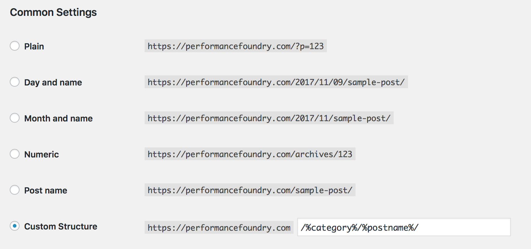 We can call this your URL structure or Permalink structure, and they mean the same thing. Your Site Structure or Link Structure is a little different.